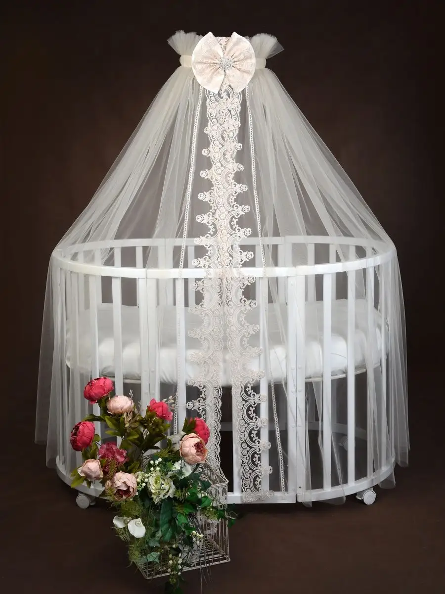 Создайте волшебную атмосферу в детской комнате с очаровательным балдахином на кроватку PATRINO! Этот нежный балдахин, словно воздушный облачко, окутает кроватку вашего малыша, создавая уютный и защищенный мир для сладких снов. Изготовленный из мягкого еврофатина, он нежно струится, создавая сказочную атмосферу в детской. Декоративные элементы из кружева добавляют балдахину особую изящность и очарование, делая его идеальным выбором для вашего малыша.