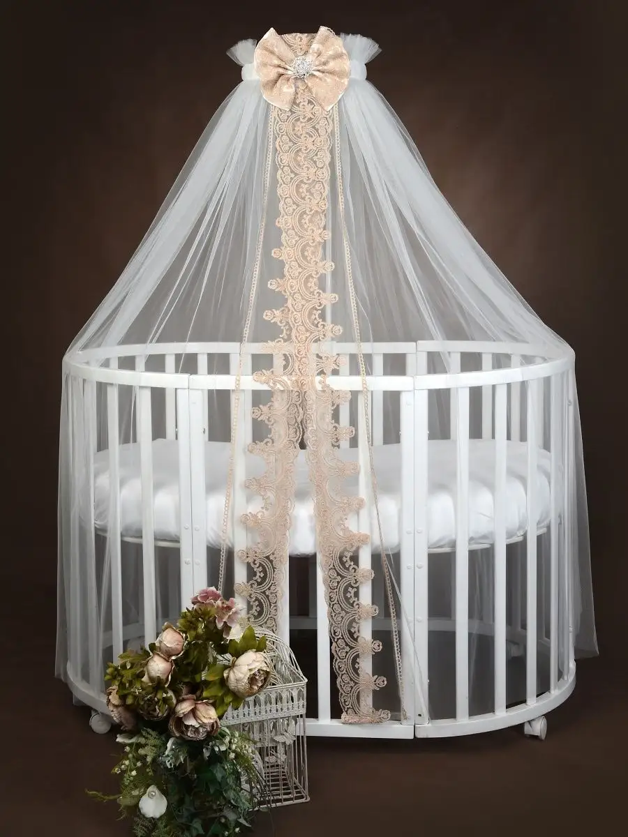 Создайте волшебную атмосферу в детской комнате с очаровательным балдахином на кроватку PATRINO! Этот нежный балдахин, словно воздушный облачко, окутает кроватку вашего малыша, создавая уютный и защищенный мир для сладких снов. Изготовленный из мягкого еврофатина, он нежно струится, создавая сказочную атмосферу в детской. Декоративные элементы из кружева добавляют балдахину особую изящность и очарование, делая его идеальным выбором для вашего малыша.