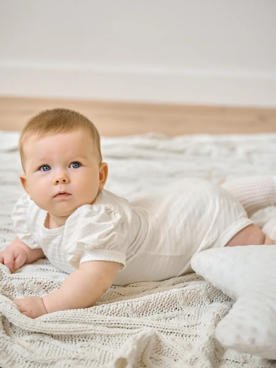 Боди для новорожденной девочки PATRINO  – это идеальный выбор для любой торжественной даты или просто для ежедневного комфорта. Сшитое из 100% хлопка, боди нежно облегает тело малыша, обеспечивая максимальную мягкость и комфорт. Классическая модель с коротким рукавом и кнопками на плечах и внизу боди, позволяет легко надевать и снимать его. Нарядное боди украшено жаккардовой тканью, что придает ему особый шарм и элегантность. Благодаря универсальному розовому цвету, боди станет прекрасным подарком на рождение, на годик, или на любой другой праздник. Боди PATRINO - это не только стильный, но и практичный выбор для каждой мамочки, который подойдет как для повседневной носки, так и для фотосессии.