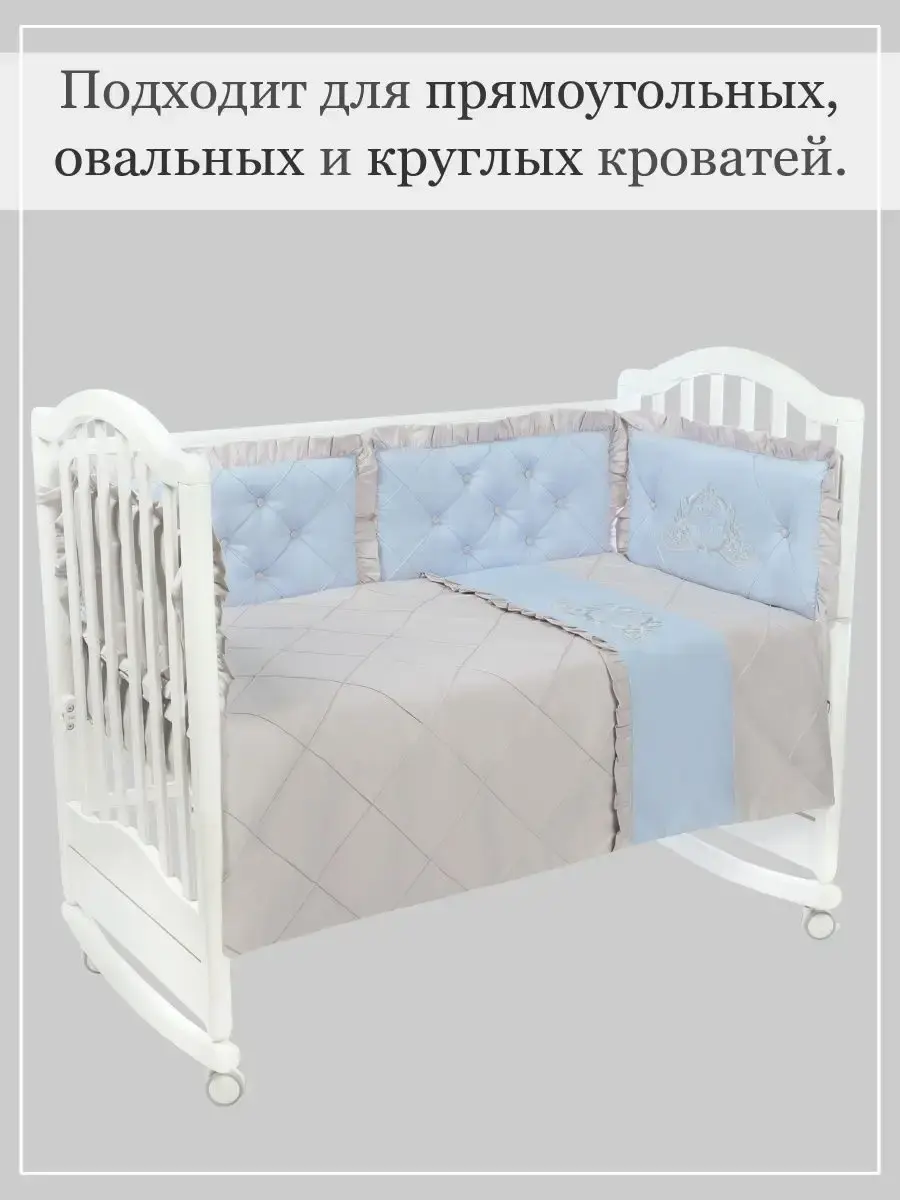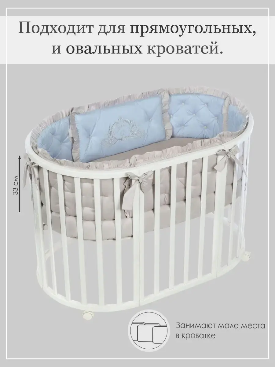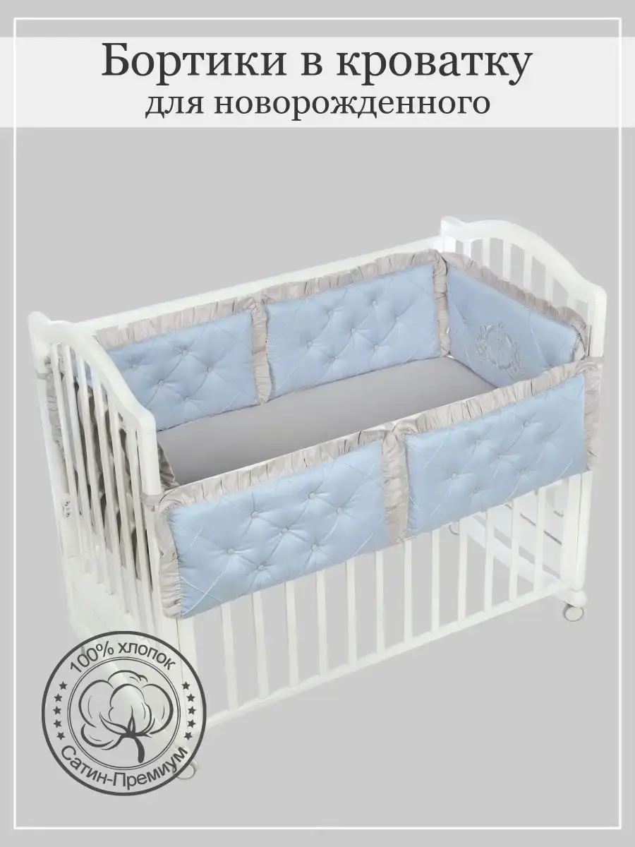 Бортики в кроватку для новорожденных из высококачественного сатина - это идеальный выбор родителей для которых важна красота, удобство и качество. Бортики для детской кровати должны быть максимально безопасными, поэтому в качестве наполнителя использован холлофайбер 600 грамм. Постельное белье декорировано изысканной вышивкой. Бортики выполнены по технологии "каретная стяжка". Они не имеют съемных чехлов, но при этом прекрасно стираются при температуре 30С. Комплект в кроватку для новорожденного подходит для круглой, овальной и прямоугольной кроватки.