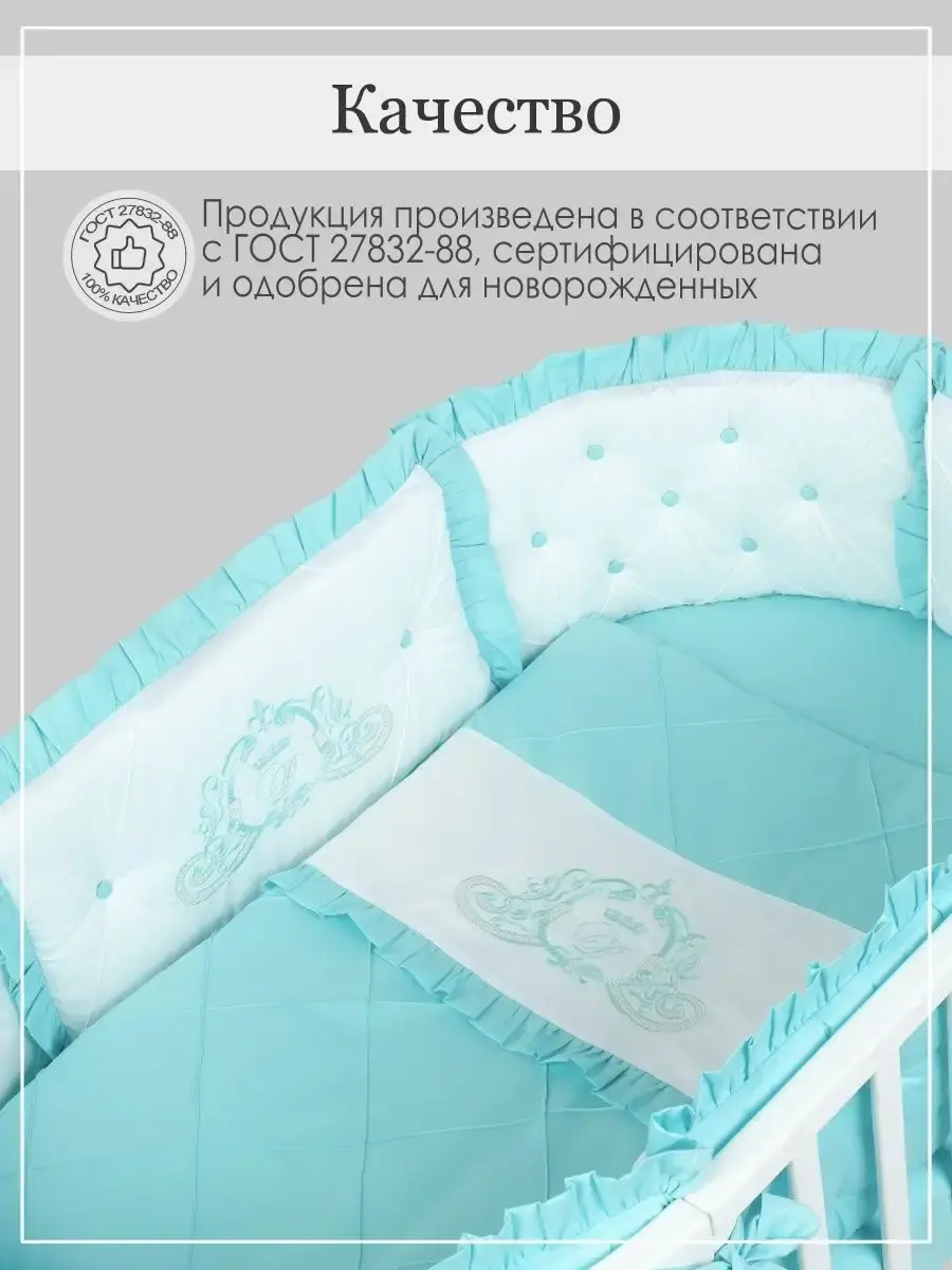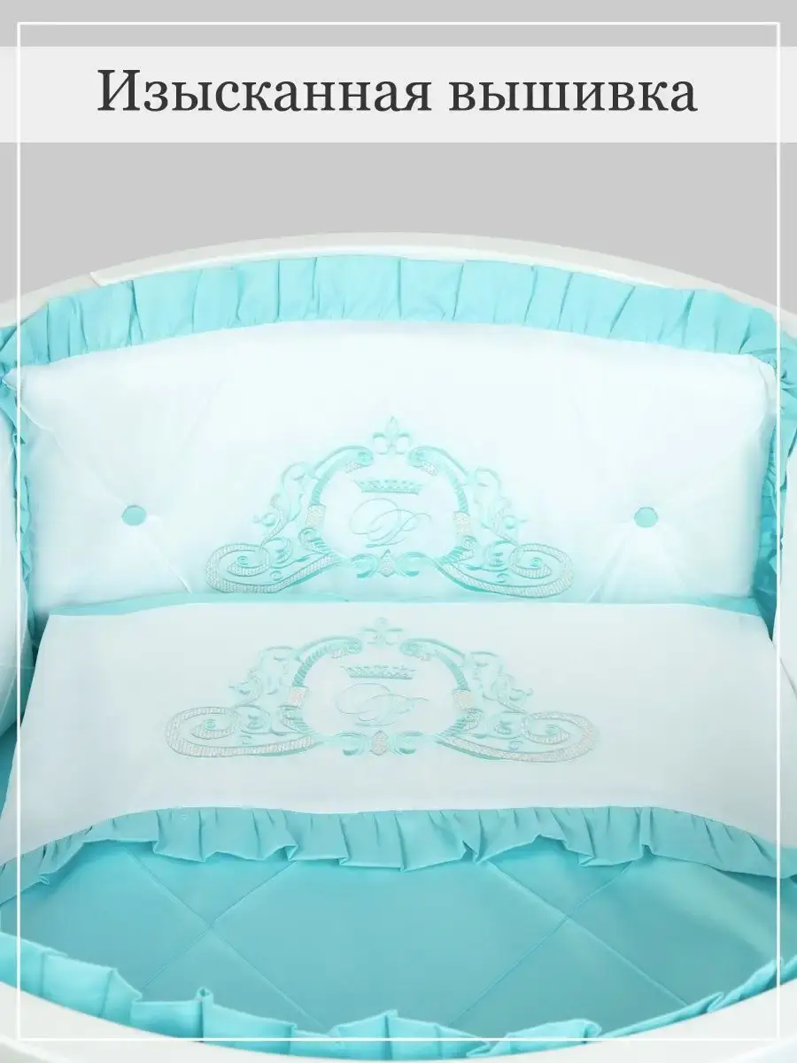 Бортики в кроватку для новорожденных из высококачественного сатина - это идеальный выбор родителей для которых важна красота, удобство и качество. Бортики для детской кровати должны быть максимально безопасными, поэтому в качестве наполнителя использован холлофайбер 600 грамм. Постельное белье декорировано изысканной вышивкой. Бортики выполнены по технологии "каретная стяжка". Они не имеют съемных чехлов, но при этом прекрасно стираются при температуре 30С. Комплект в кроватку для новорожденного подходит для круглой, овальной и прямоугольной кроватки.