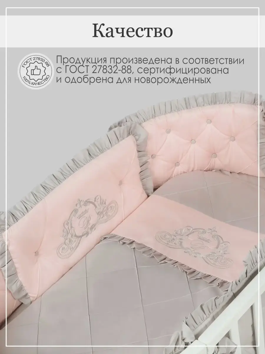 Бортики в кроватку для новорожденных из высококачественного сатина - это идеальный выбор родителей для которых важна красота, удобство и качество. Бортики для детской кровати должны быть максимально безопасными, поэтому в качестве наполнителя использован холлофайбер 600 грамм. Постельное белье декорировано изысканной вышивкой. Бортики выполнены по технологии "каретная стяжка". Они не имеют съемных чехлов, но при этом прекрасно стираются при температуре 30С. Комплект в кроватку для новорожденного подходит для круглой, овальной и прямоугольной кроватки.