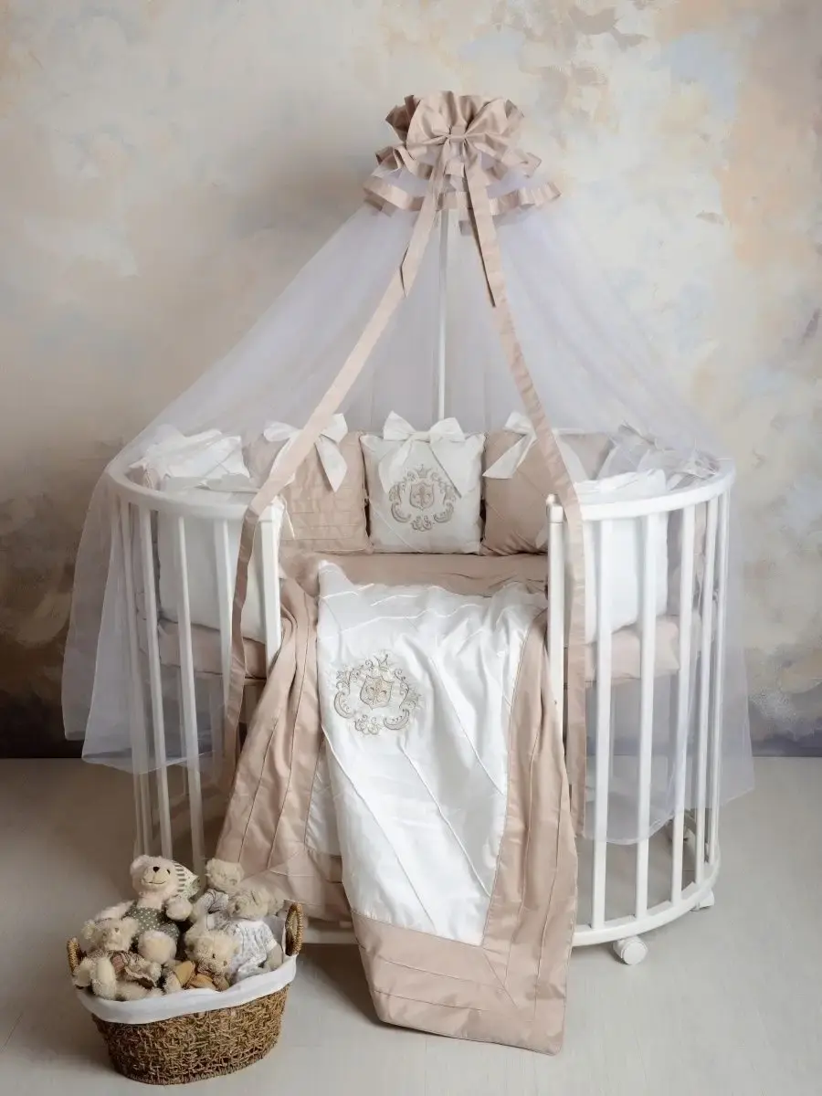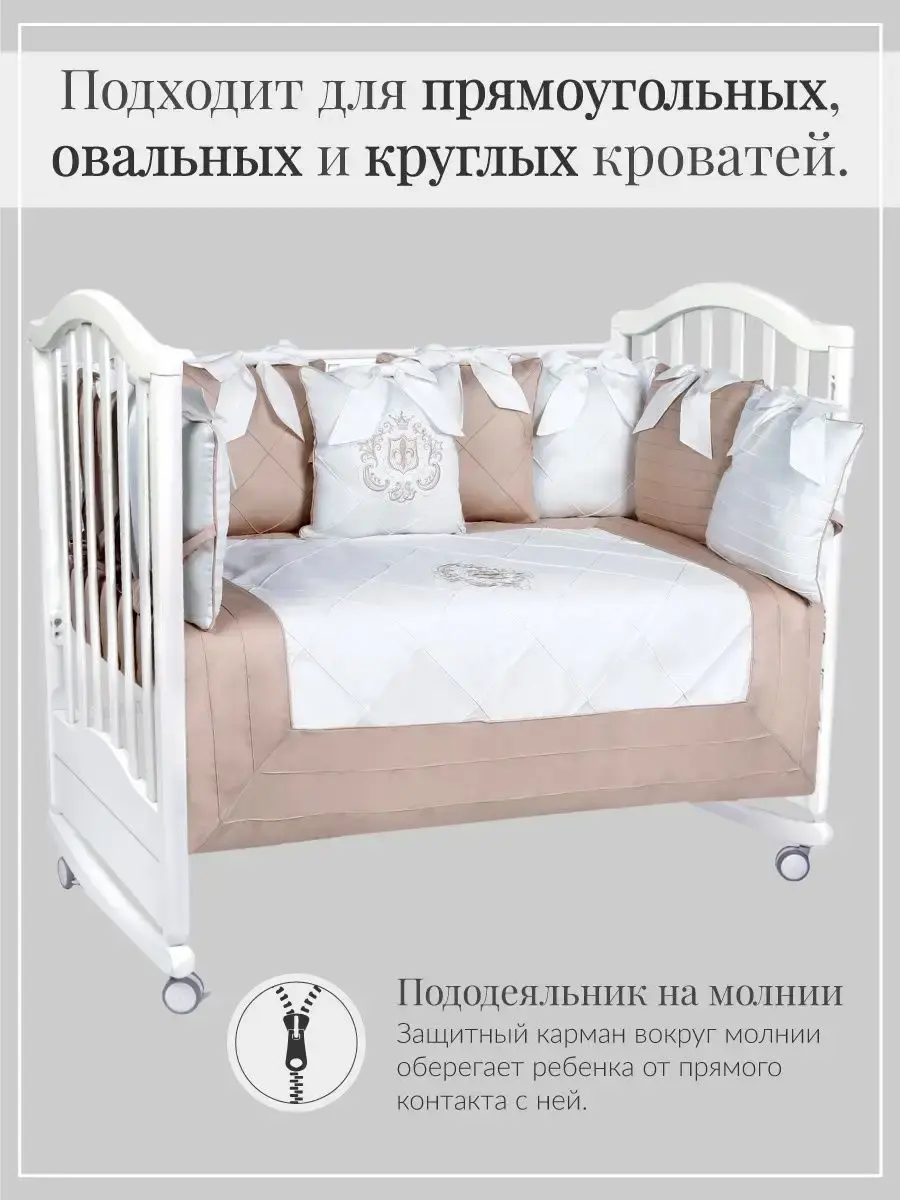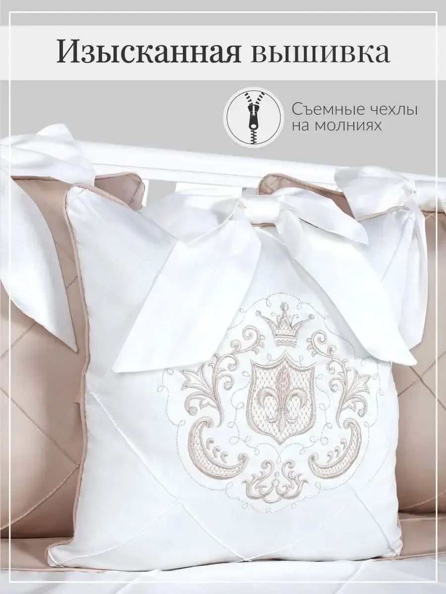 Бортики в кроватку для новорожденного с комплектом постельного белья подходят для круглой, овальной, классической кроватки. Исключительную ценность для безопасности ребенка составляют бортики для детской кроватки со съемными чехлами на молнии, которые сгладят любое неосторожное движение малыша во время сна. Бортики в кроватку крепятся бантами-завязками из основной ткани. Комплект в кроватку для новорожденного выполнен из сатина, основные преимущества которого заключаются в том, что он значительно дольше эксплуатируется. Комплект для новорожденного декорирован изысканной машинной вышивкой, что придает по-настоящему королевский, аристократический вид. Одеяло с пододеяльником на молнии Вы сможете использовать как комплект на выписку новорожденного.Комплект бортиков для детской кроватки - это хороший подарок на рождение малыша. Для оформления детской комнаты в едином стиле Вы можете приобрести балдахин в цвет комплекта, либо в цвет спальни родителей. Лента для конверта новорожденного в подарок.