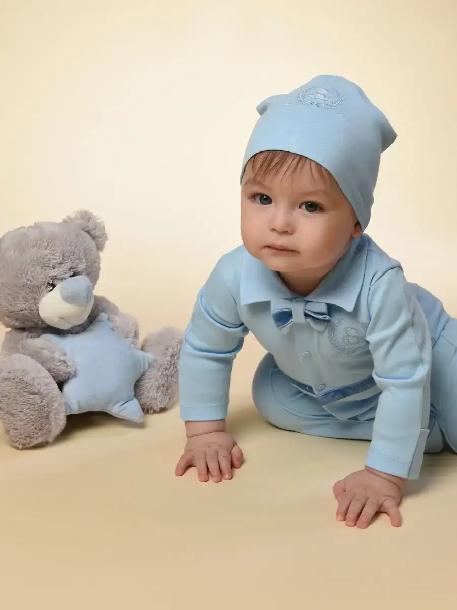 Уютный и оригинальный комплект для новорожденных позволит сделать выписку вашего малыша незабываемой. Нательный комплект для мальчиков выполнен из натурального, приятного телу и экологически чистого хлопка. Универсальное боди с длинным рукавом представлено в широкой размерной линейке. Комбинезон подходит от рождения и до шести месяцев.