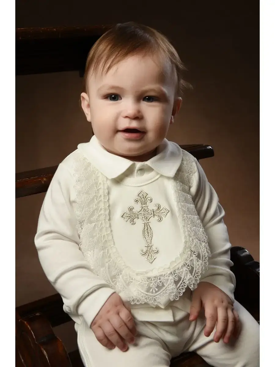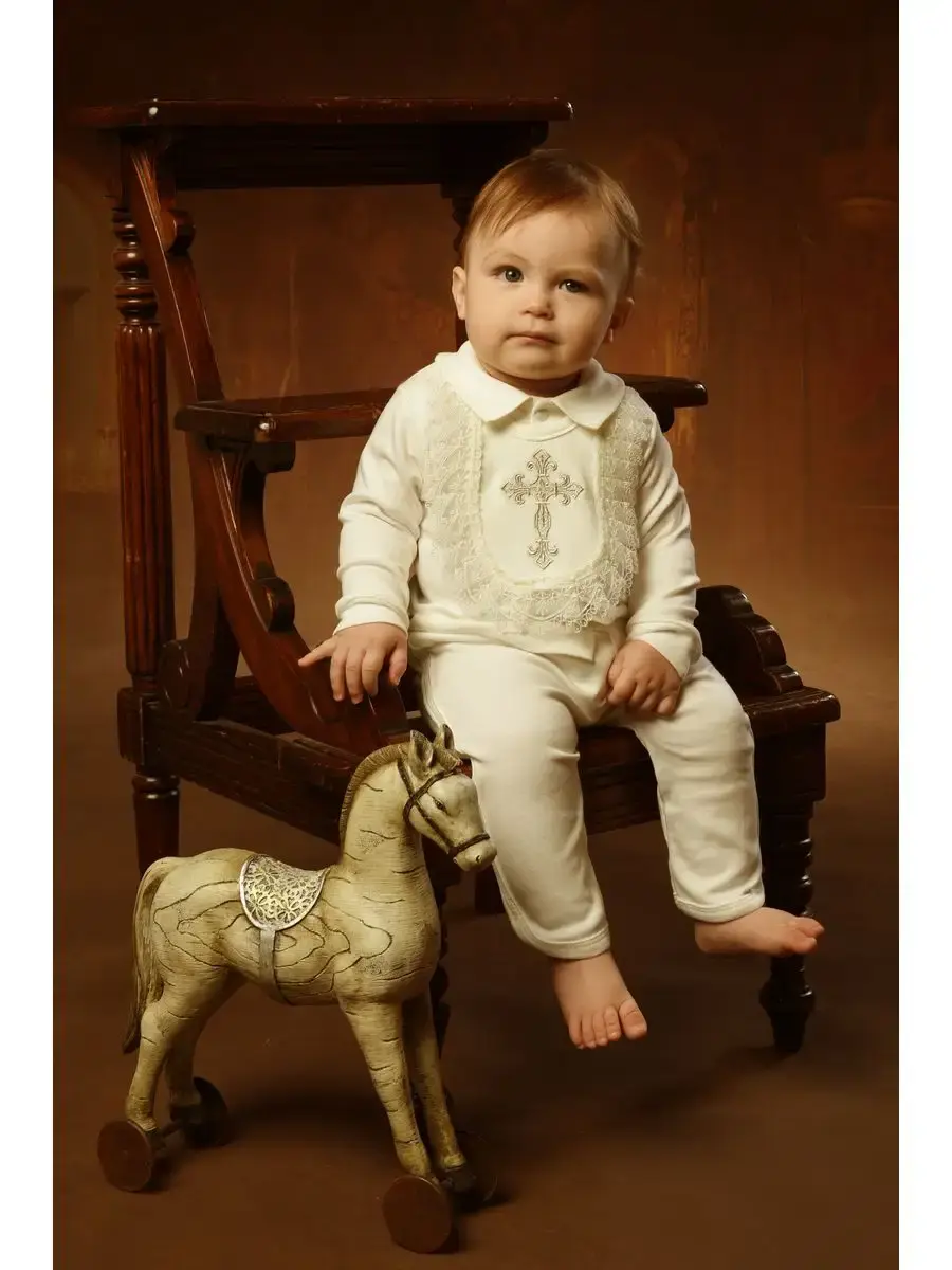 Представляем вам очаровательный крестильный комплект для мальчика от PATRINO, созданный, чтобы сделать этот особенный день еще более запоминающимся! Этот нежный комплект, выполненный из мягчайшего хлопка, окутает вашего малыша комфортом и уютом. Кофточка и штанишки, украшенные вышивкой в виде крестика и изысканным кружевом на нагруднике, создают неповторимый образ, полный нежности и благородства. Этот крестильный комплект - не просто наряд для торжественного события, но и прекрасный вариант для повседневной носки, фотосессий и прогулок.